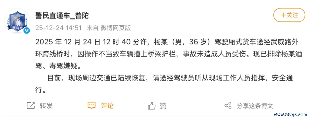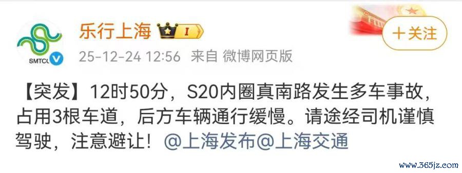 12月24日12时40分许,上海S20外环高速内圈近真南路段发生沿途交通事故。